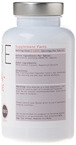 Specification: Bodybuilding Warehouse 500mg Pure Beta Alanine 120 Capsules